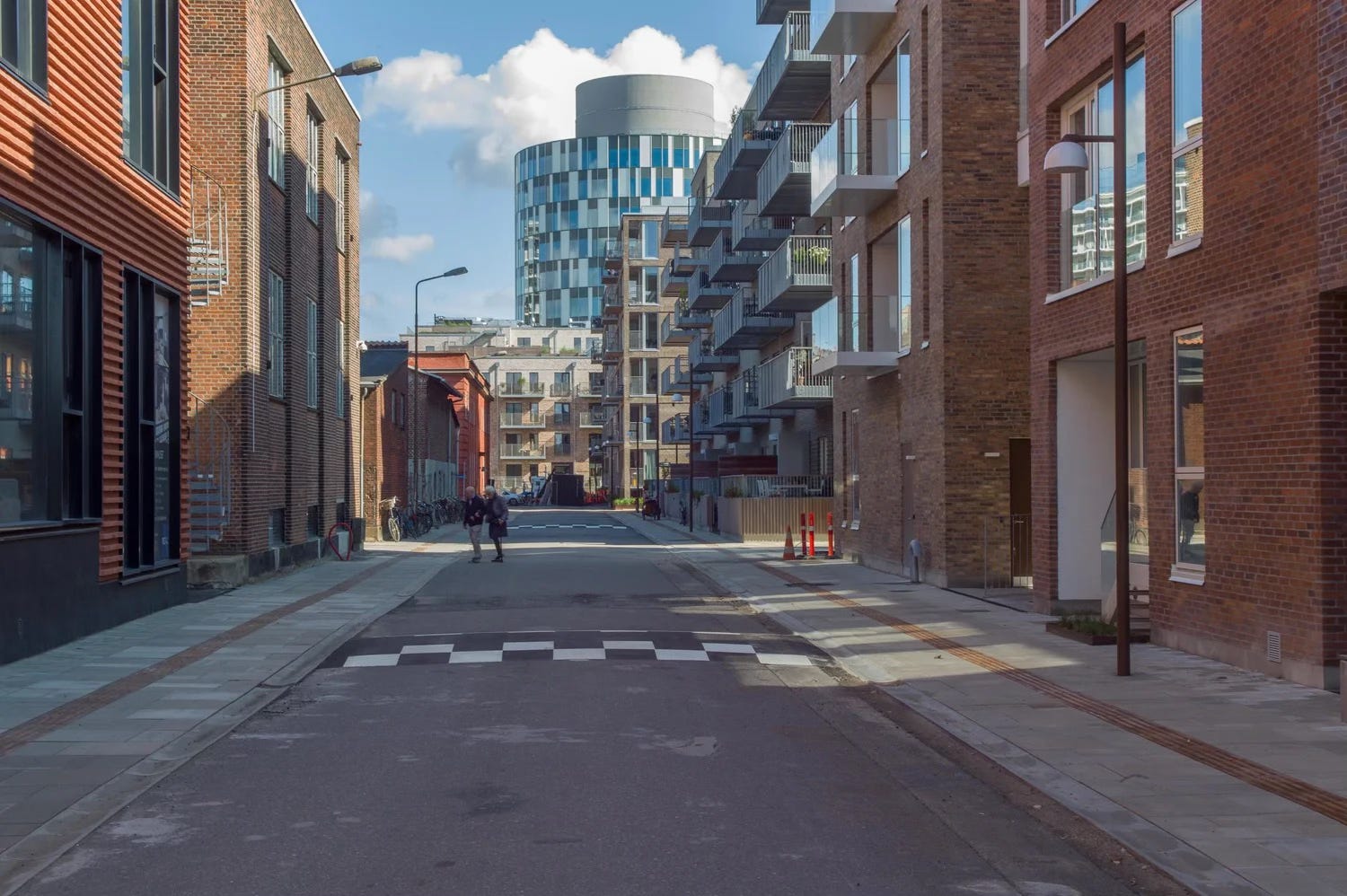 Those costs shape the structure of development itself. Because so much capital must be deployed upfront and recovered, the land is released in large parcels to well-capitalized buyers. Development consolidates into fewer hands: large institutional developers are needed to absorb risk, deploy capital at scale, and generate the proceeds required to repay those investments. Buildings are correspondingly large, high-spec, and delivered as single coordinated projects, with blocks assembled all at once rather than incrementally. The combined weight of land, infrastructure, and construction costs pushes rents and sale prices upward, making the neighborhood financially coherent only at elevated price points. Today, Nordhavn ranks among the most expensive addresses in Copenhagen, with property values roughly 20% above the city average. The result is a district built in large pieces. It is not fine-grained. It is coarse.