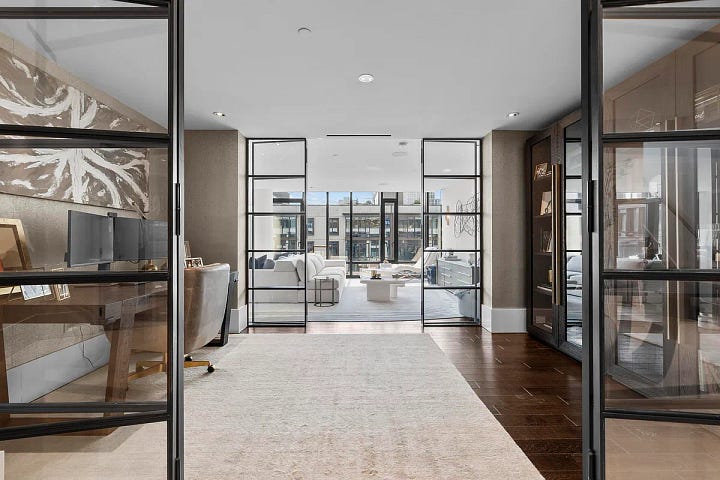 At roughly $1,000–$1,300 per square foot, the building functions as a single luxury housing product.