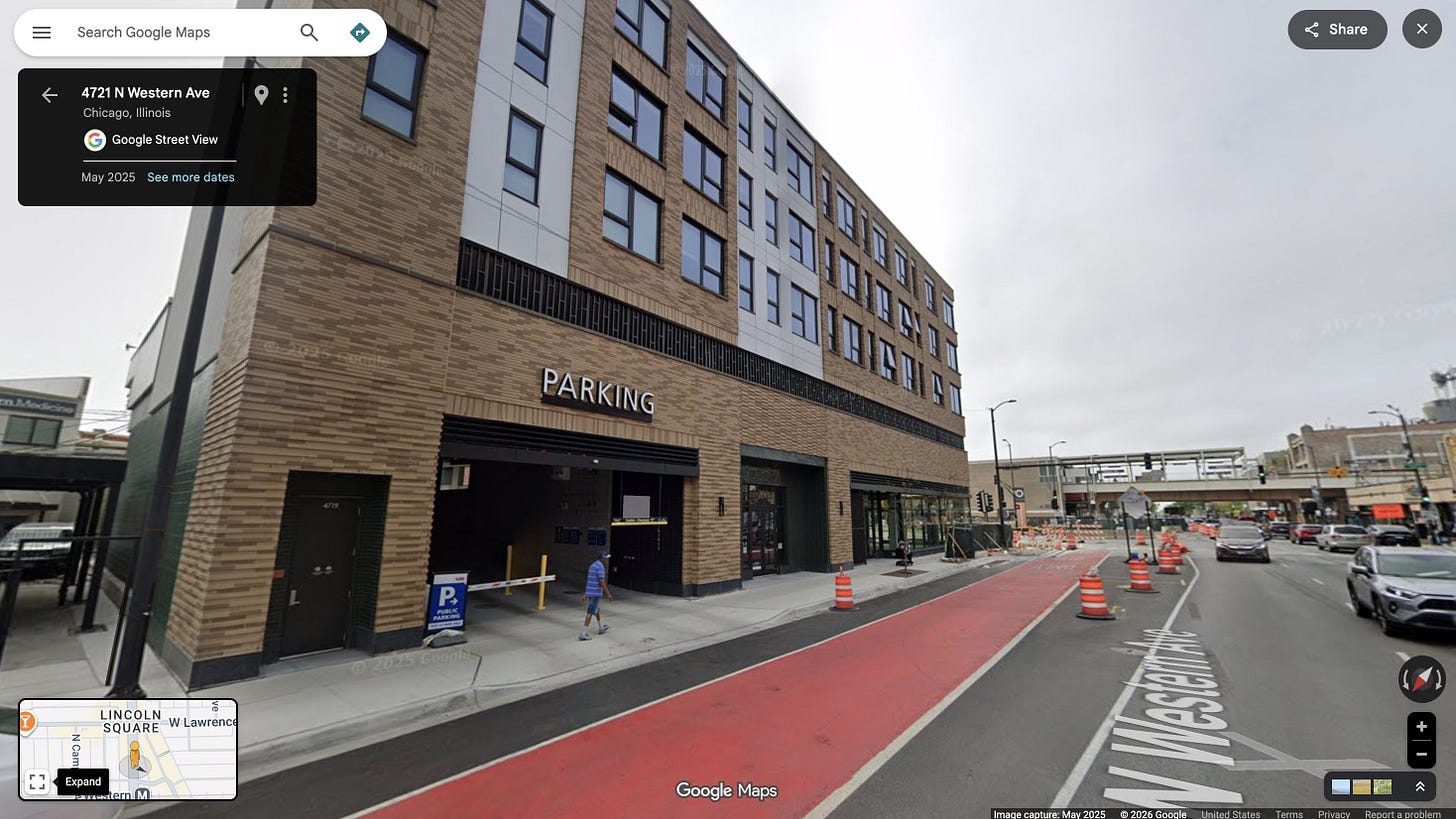Parking reform is one clear example. Eliminating parking minimums near public transport removes a primary driver of inactive ground floors and hostile streetscapes. Recent examples include California’s AB 2097, Chicago’s 2025 ordinance, and Illinois’ People Over Parking Act.